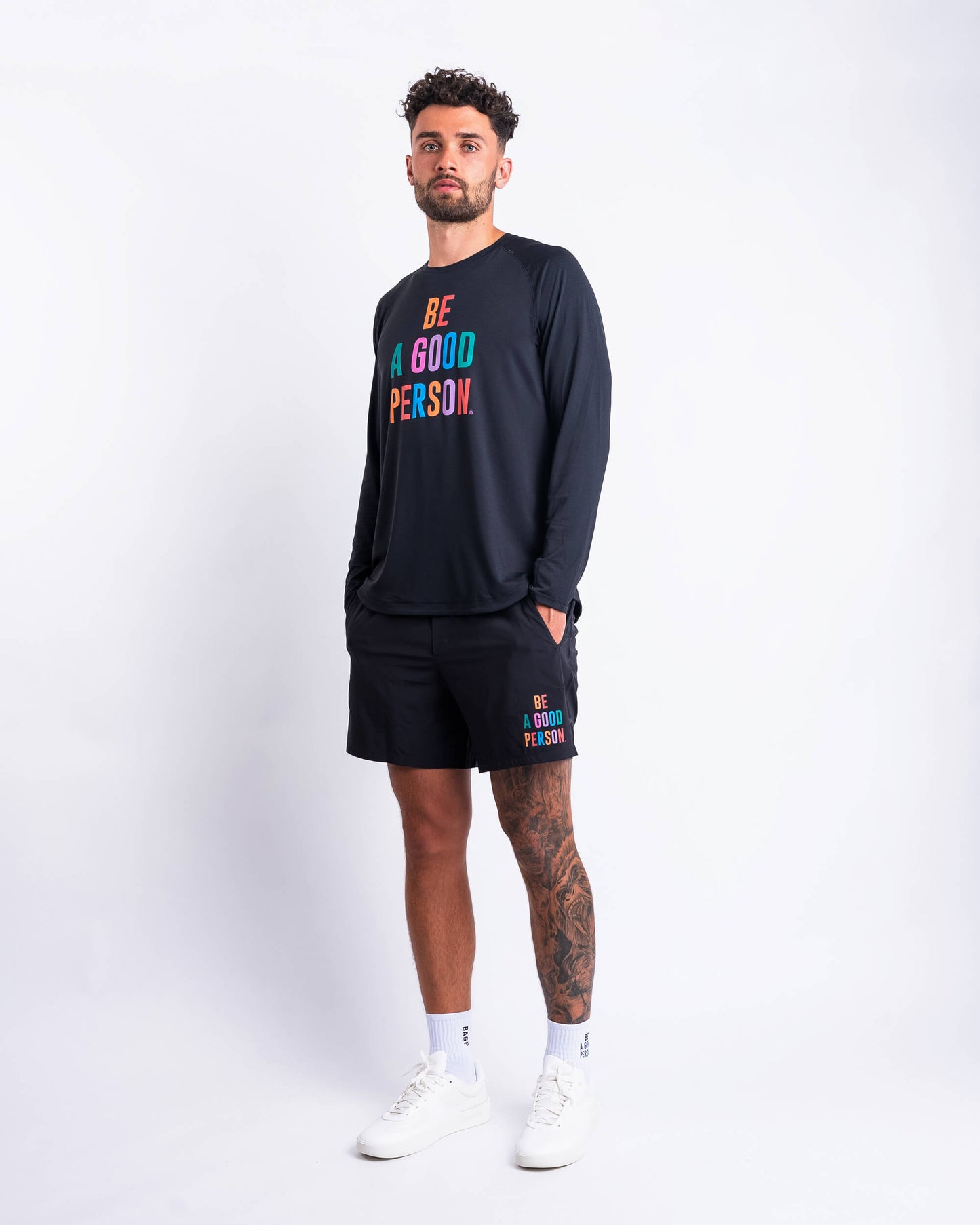 - 'Be a Good Person' Color Spectrum stacked front left leg logo