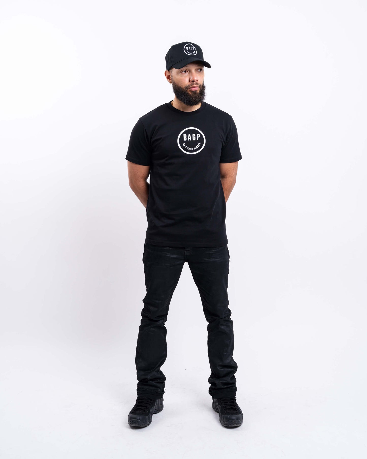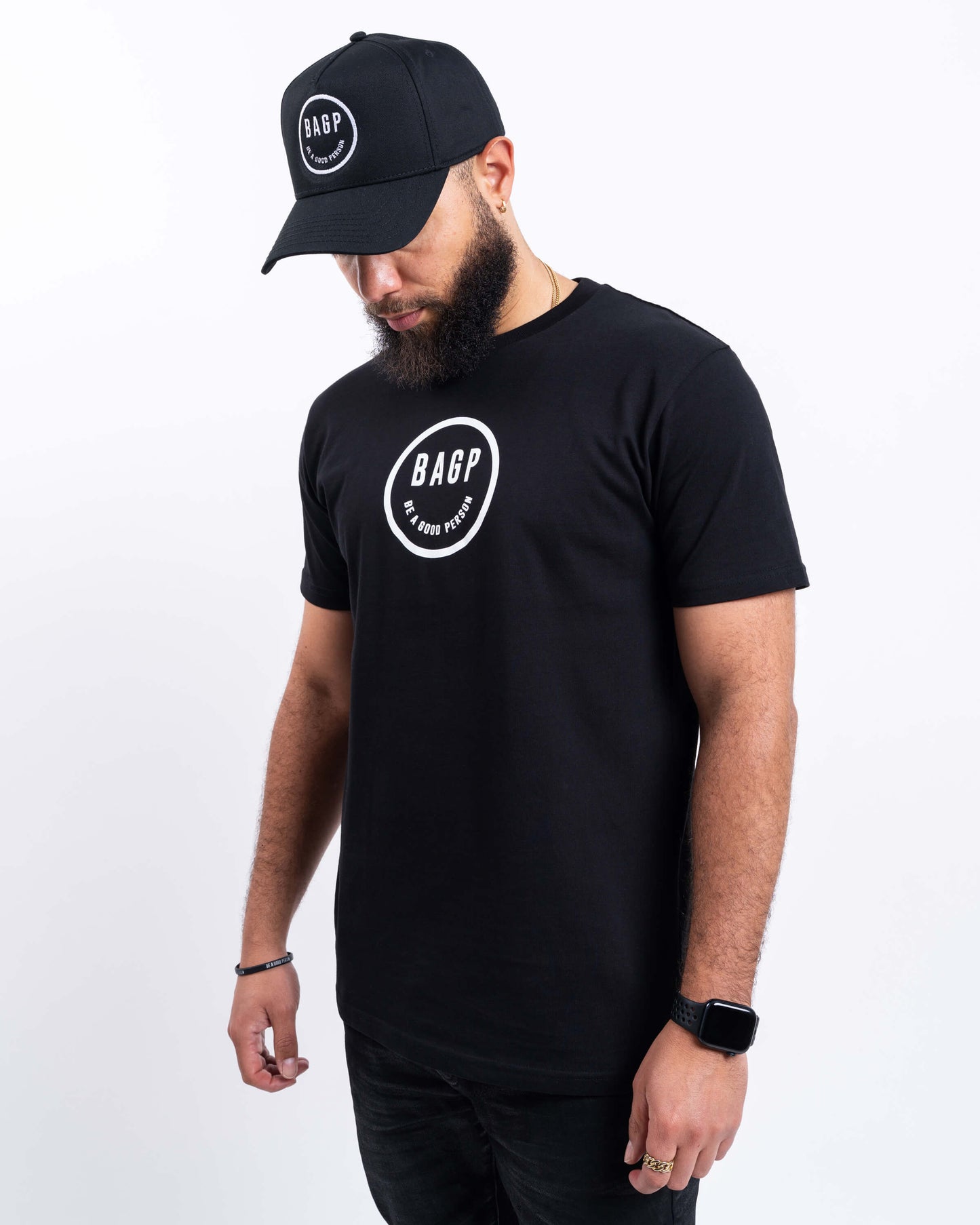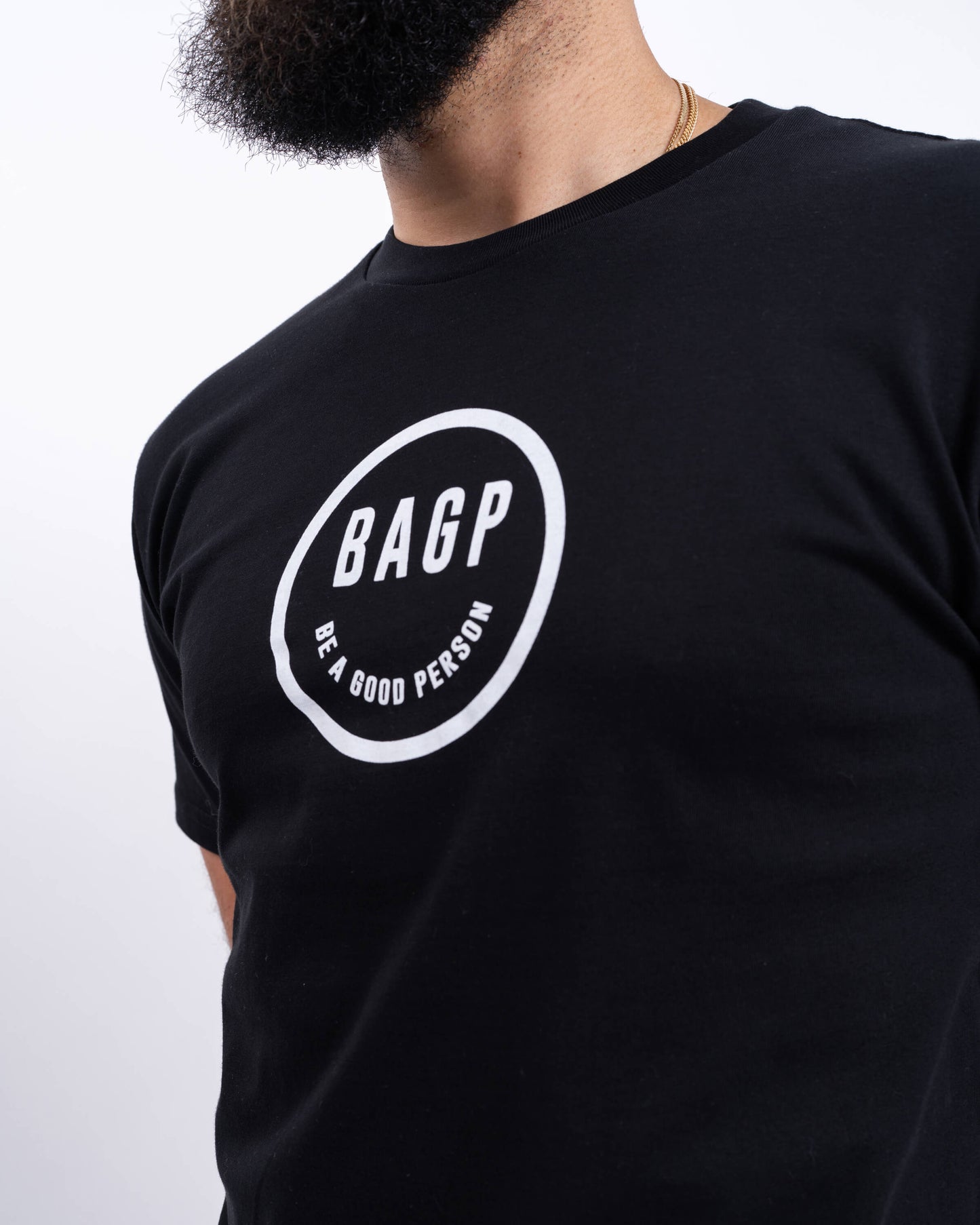 Keep it classic and let your tee do the talking with the Smiley T-Shirt – Black. Featuring our custom smiley logo with “BAGP” as the eyes and “Be a Good Person” as the smile, this everyday go-to tee brings comfort, positivity, and style in one clean package.
